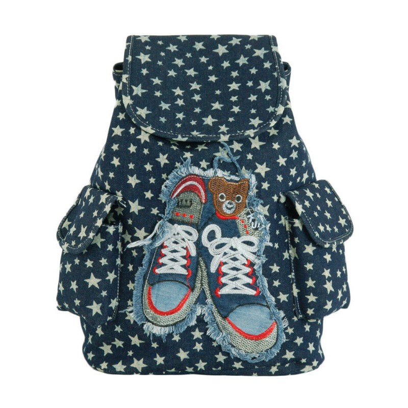 - Рюкзак 7224-11 синий джинсовый с аппликацией.