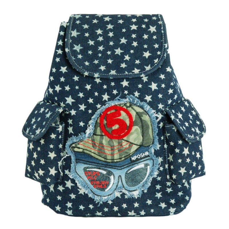 - Джинсовый рюкзак 7224-12 синий синего цвета с аппликацией "Солнечные очки".
