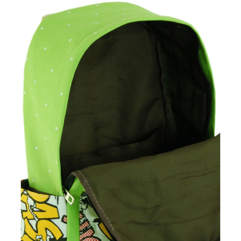 - С лицевой стороны- карман на молнии, по бокам- накладные, выполнены из ткани с ярким принтом "комиксы".
