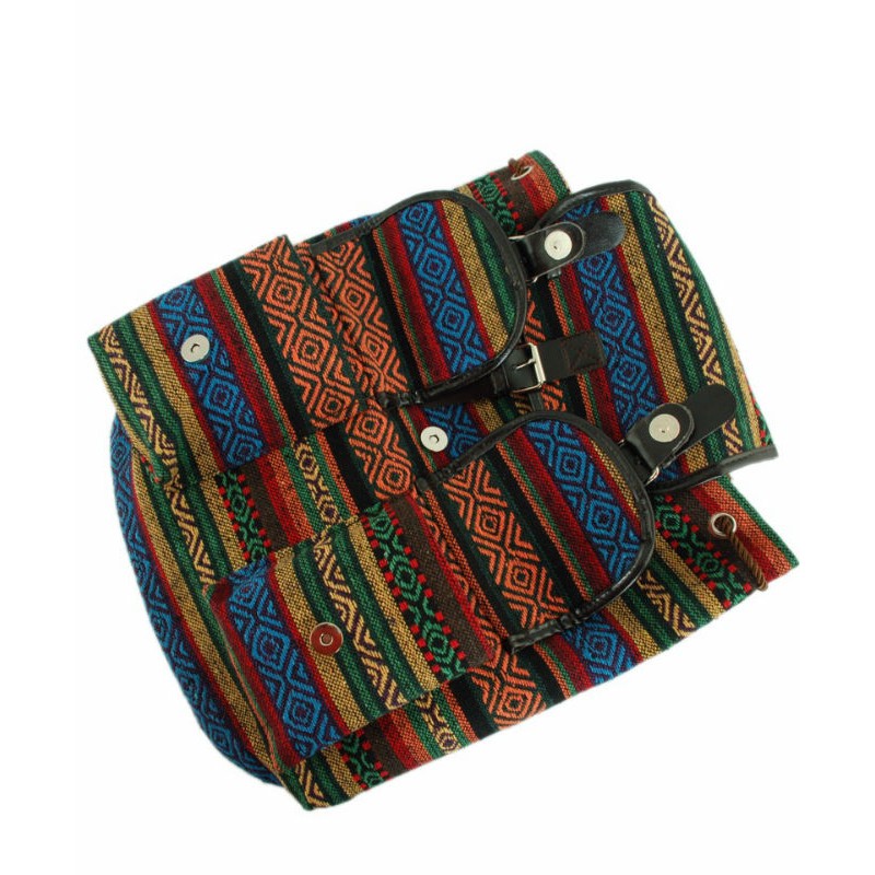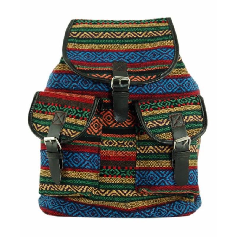 - Городской рюкзак 7224-24 желто-зелено-синий орнамент из плотного холста с этническим орнаментом.