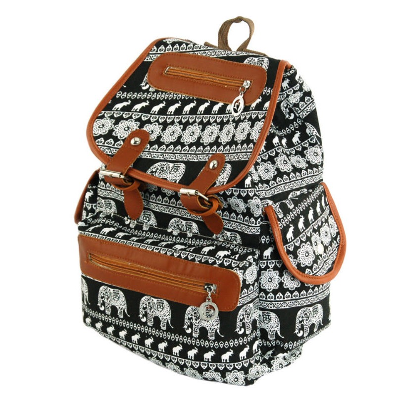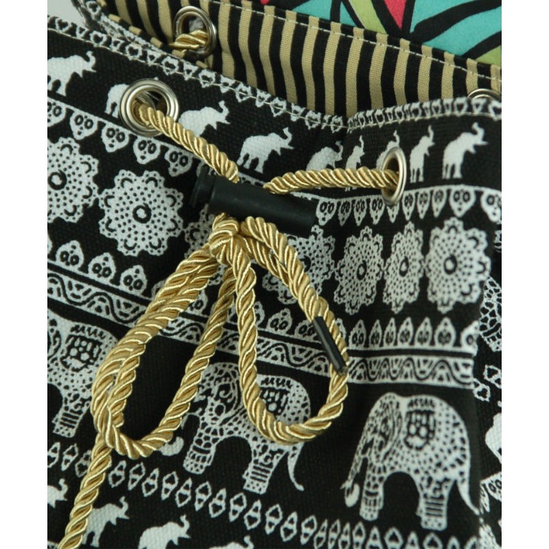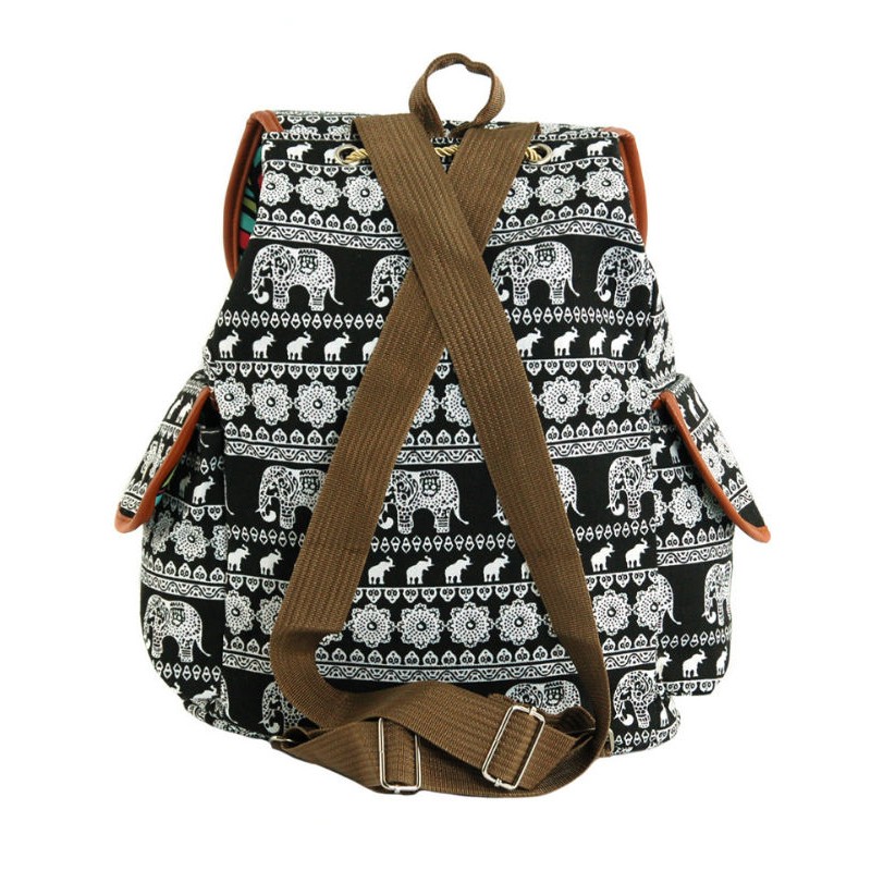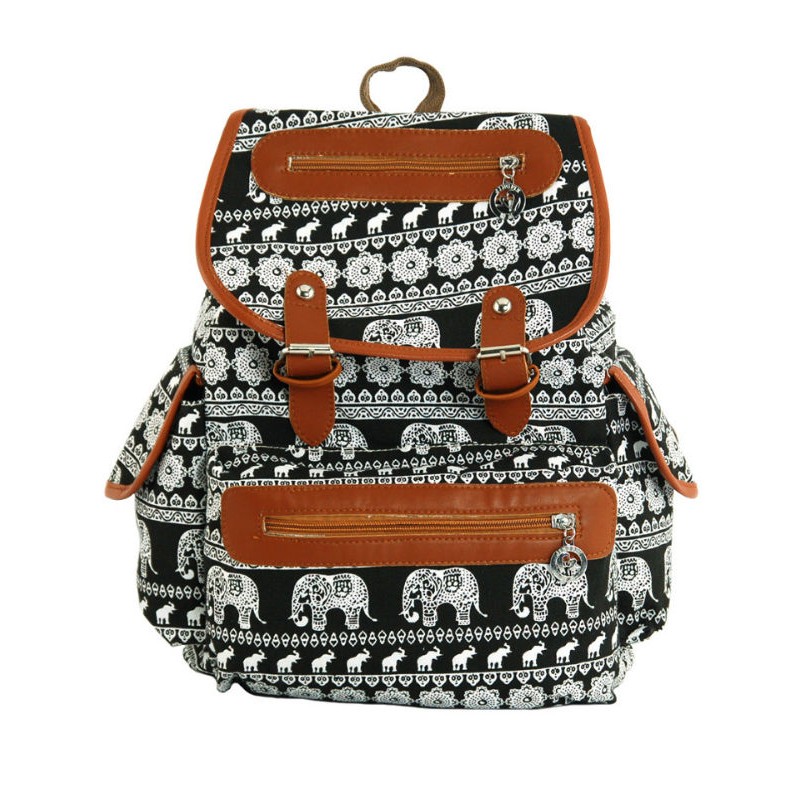 - Рюкзак 7224-25 черный произведен из плотного холста c орнаментом "слоны".