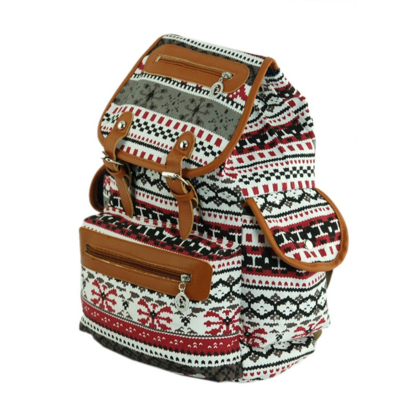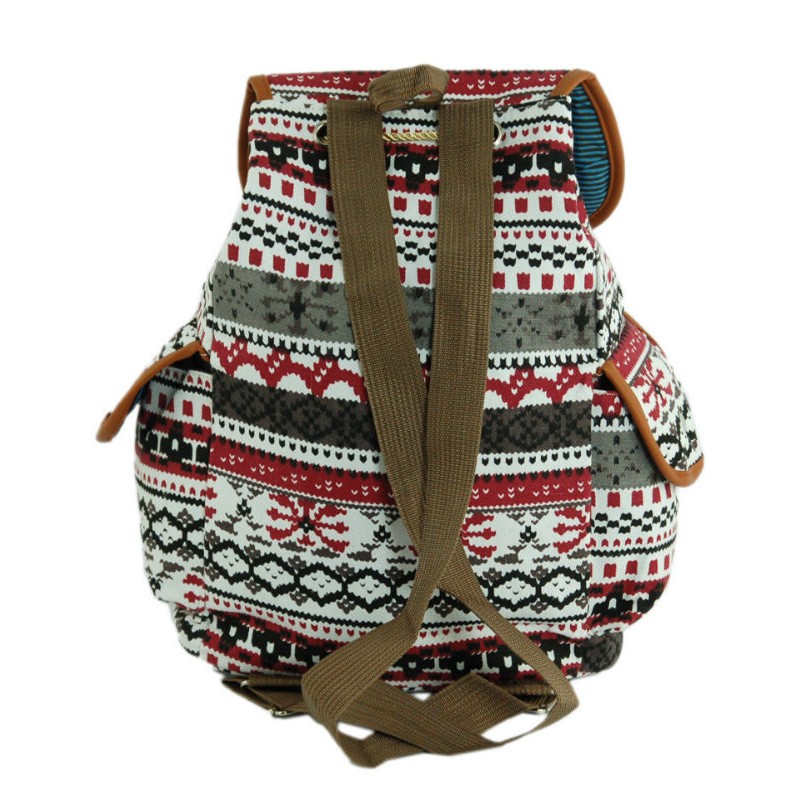 - Рюкзак 7224-29 серый из плотного холста c серо-красным орнаментом.