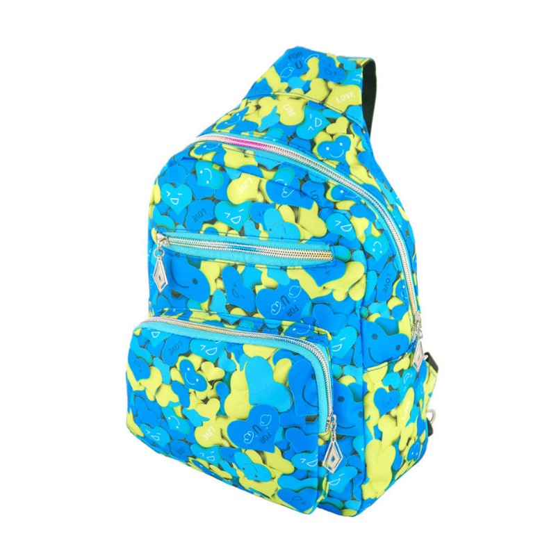 - Рюкзачок-сумка 7224-31 желто-голубого цвета с ярким принтом из плотной ткани.