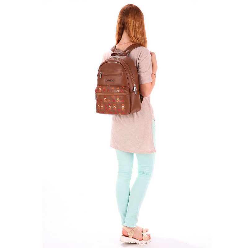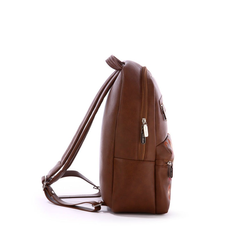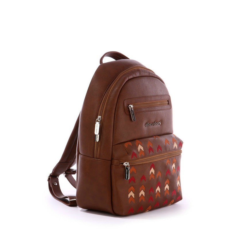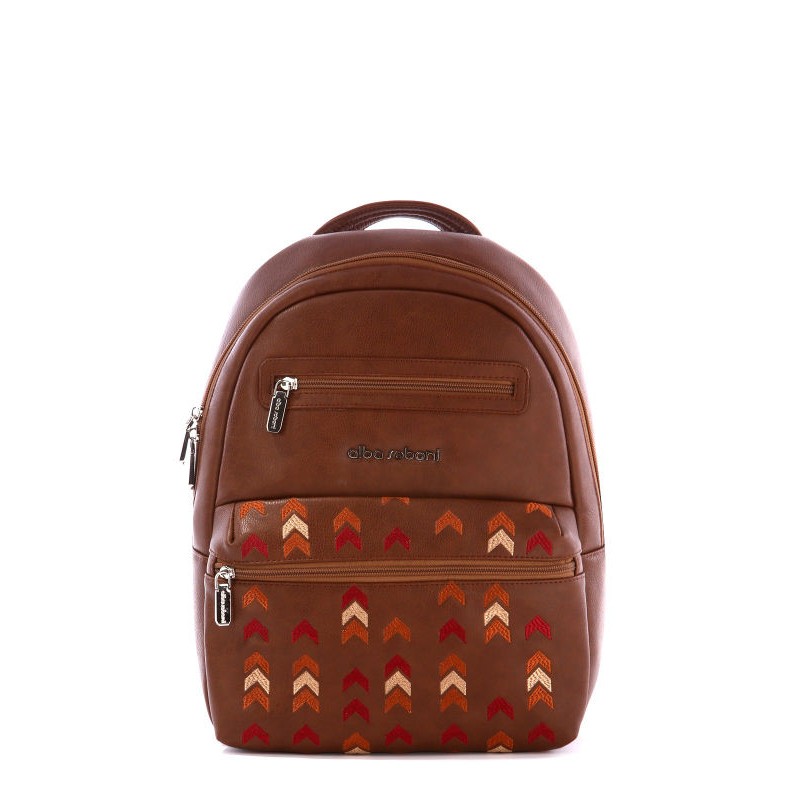 - Женский рюкзак Alba Soboni 171373 коричневый с вышивкой.