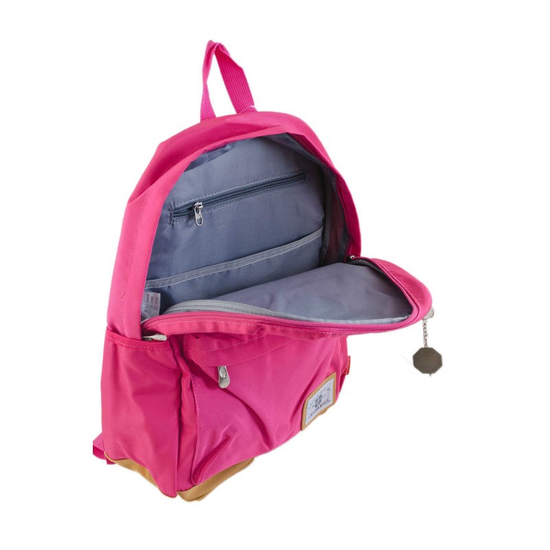 - Внутри рюкзака: одно основное отделение, открытый карман, карман на молнии.