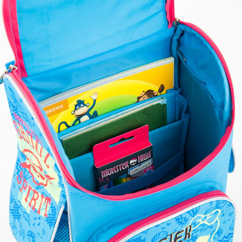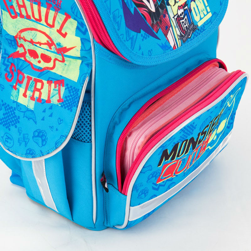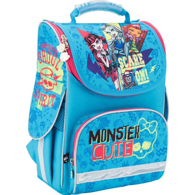 - Рюкзак школьный каркасный 501 Monster High MH17-501S голубой для девочек младшей школы с принтом из мультика Монстер Хай.
