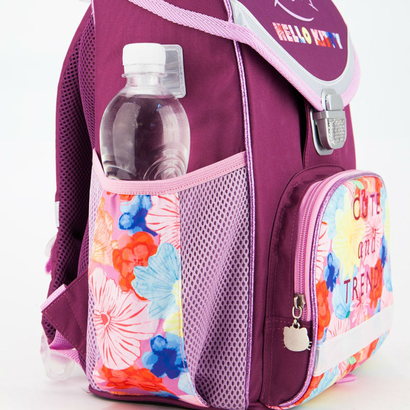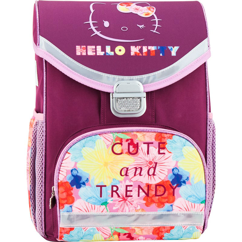 - Рюкзак школьный каркасный 529 Hello Kitty HK17-529S фиолетовый для девочек младшей школы с принтом изображения кошечки Хелло Китти.