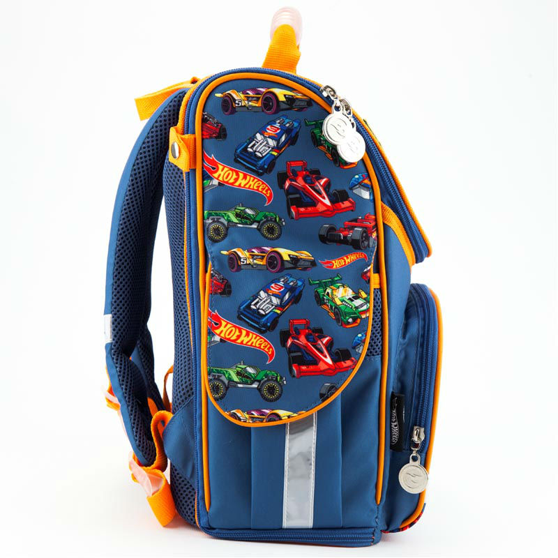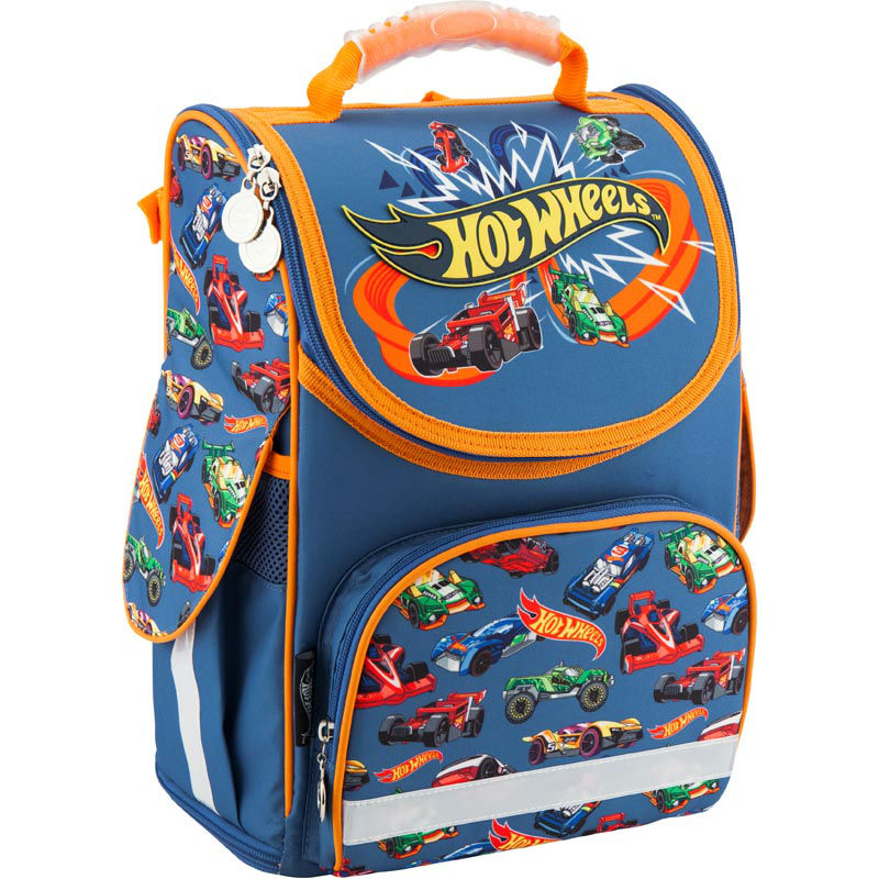 - Каркасный рюкзак школьный "трансформер" Kite Hot Wheels HW18-500S голубой для мальчиков младшей школы с принтом их Хот Вилс.
