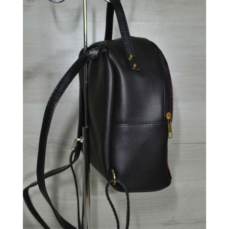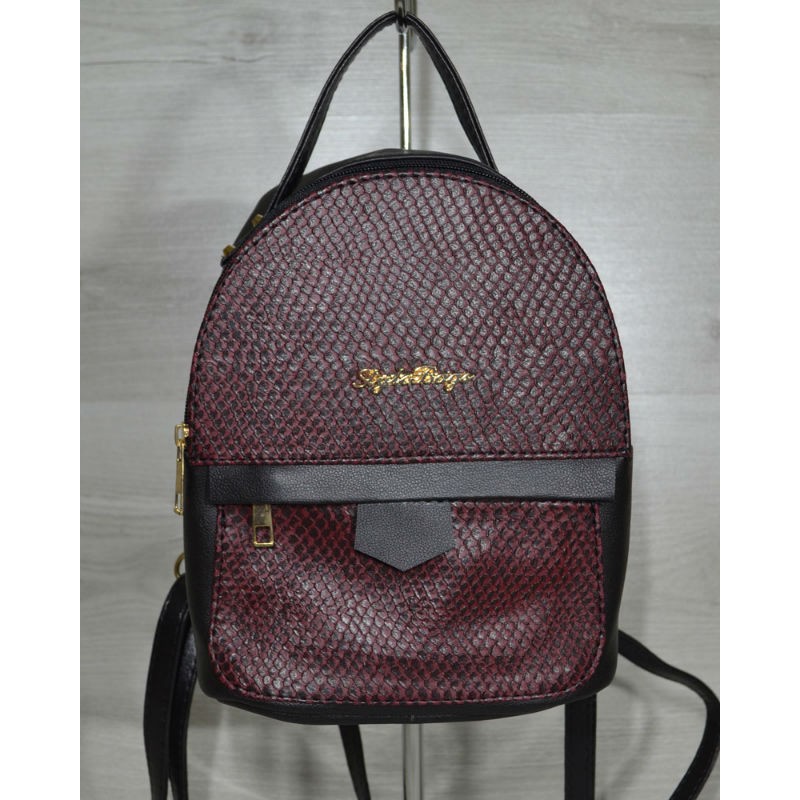 - Шикарный женский рюкзак Welassie среднего размера черный с вставкой бордовой змеей 43604.