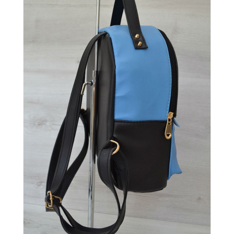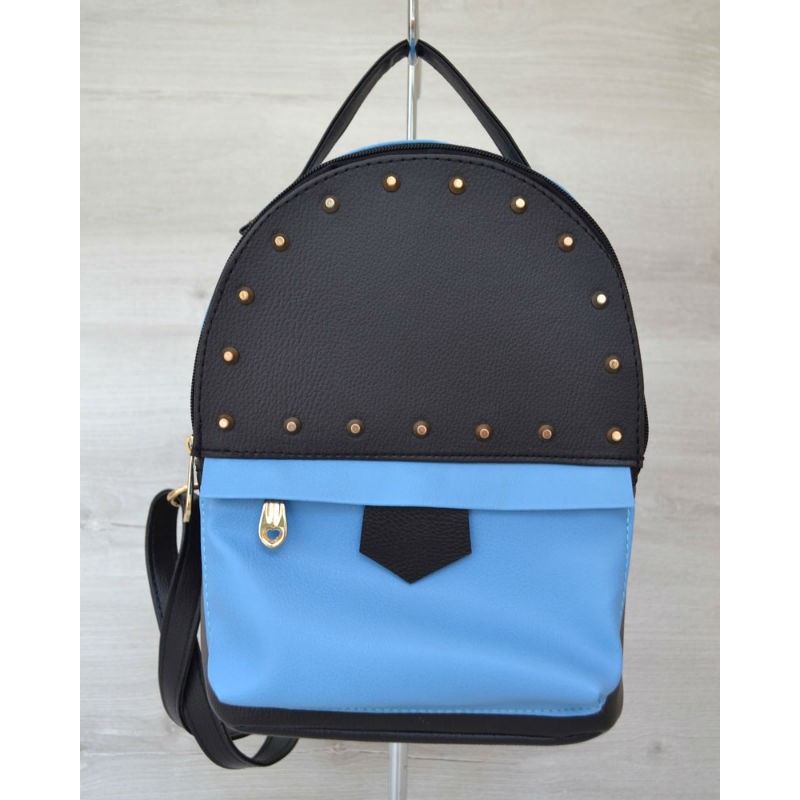 - Красивый женский рюкзак Welassie сверху шипы черный c голубым 43402.