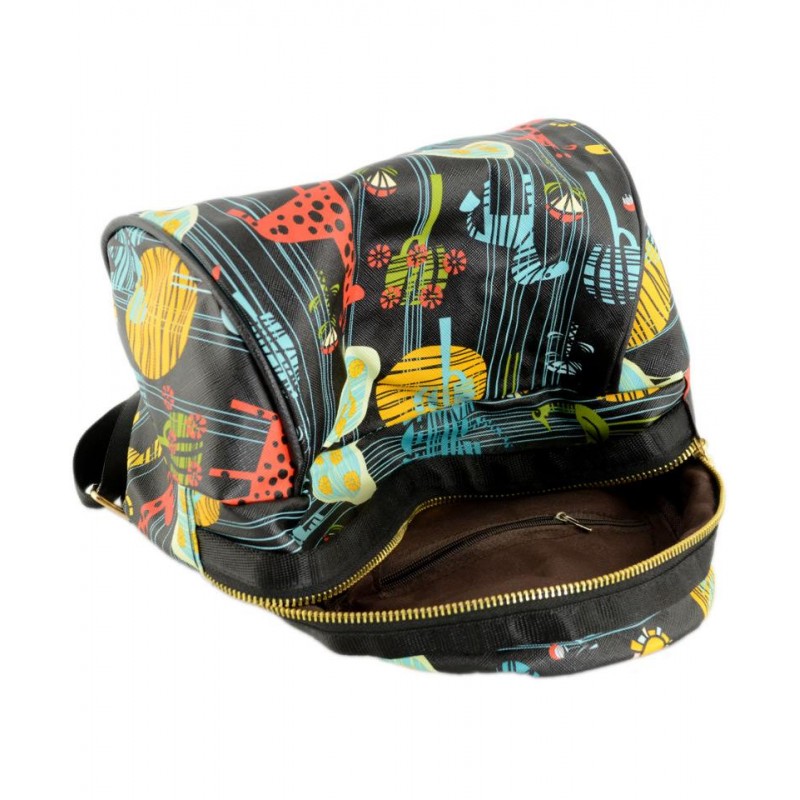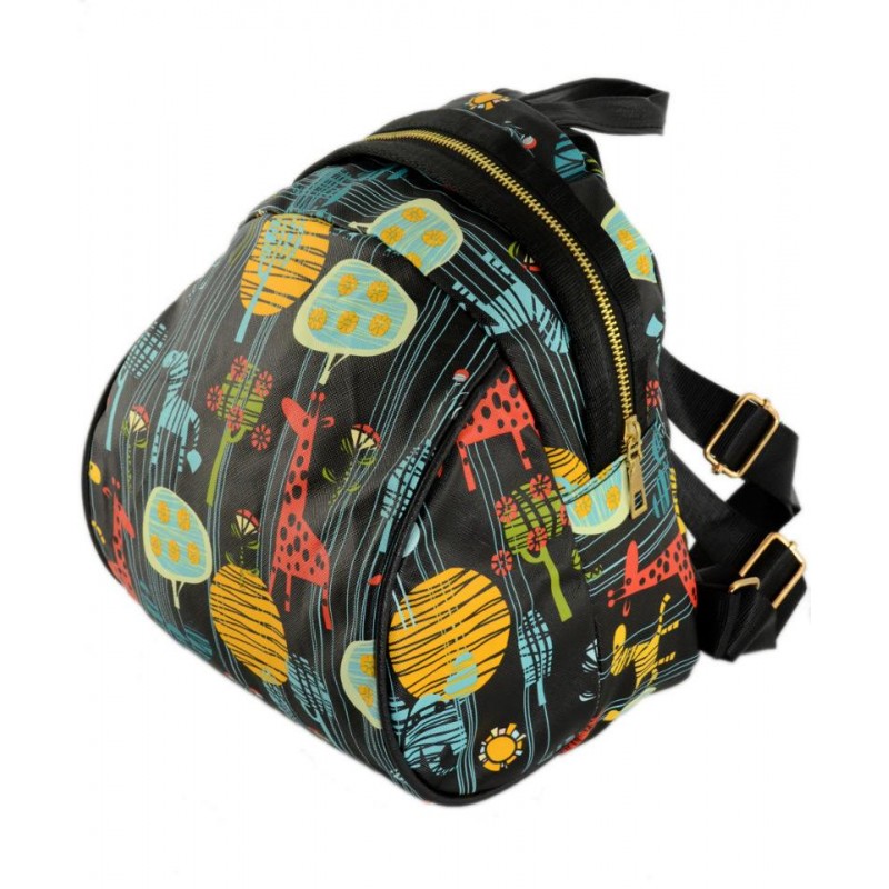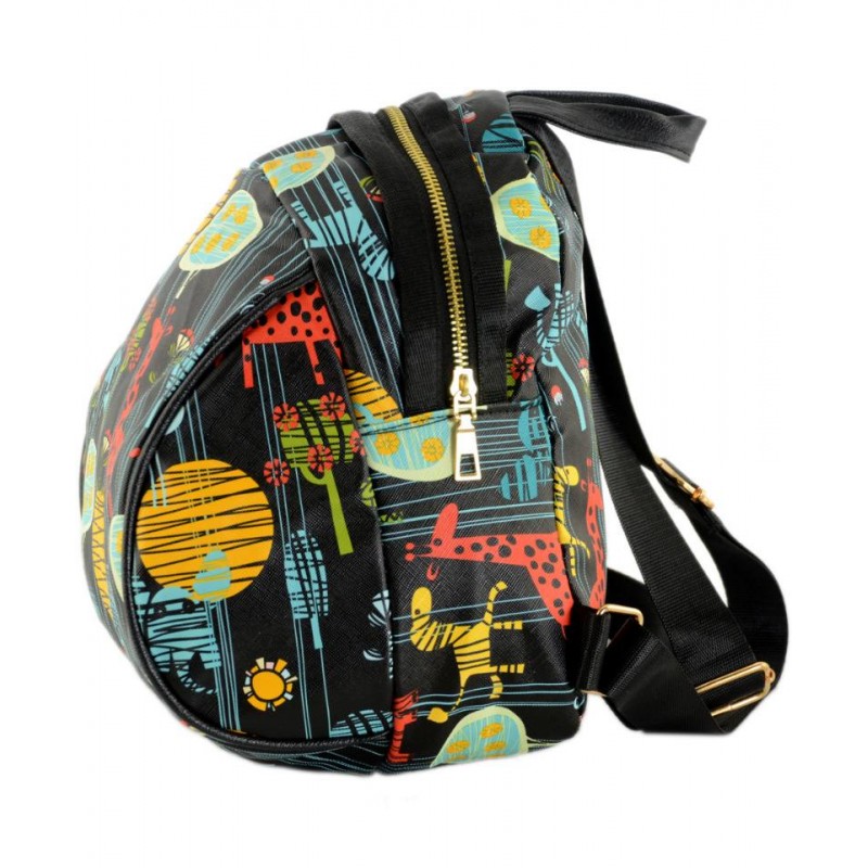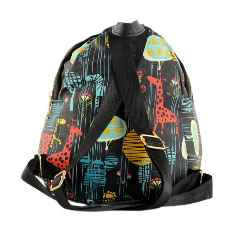 - Рюкзак TRAUM 7229-78 черный с ярким принтом зебры, жирафы.