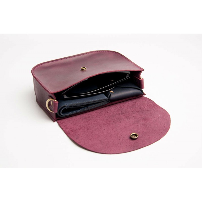 - Маленькая женская кожаная сумка - седло Wellbags Saddle vinous mini W008.6M бордо.
