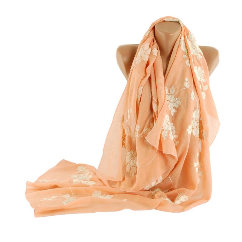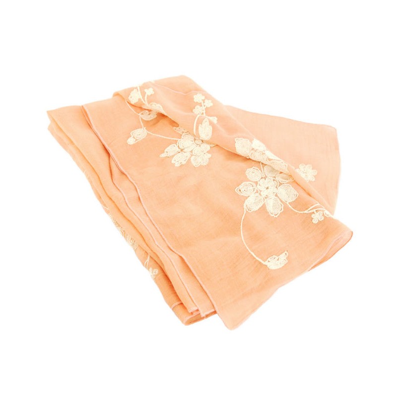 Шаль TRAUM 2494-67 персиковая с белыми вышитыми цветами - стильная и нежная.
