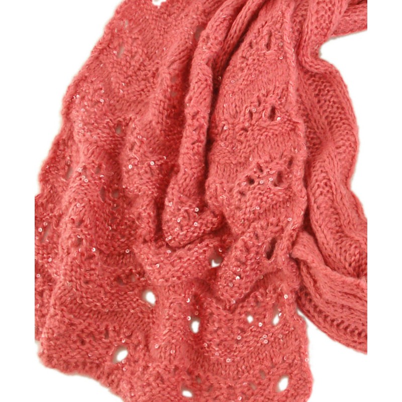 Ажурный вязаный шарф TRAUM 2483-04 розовый с блеском.