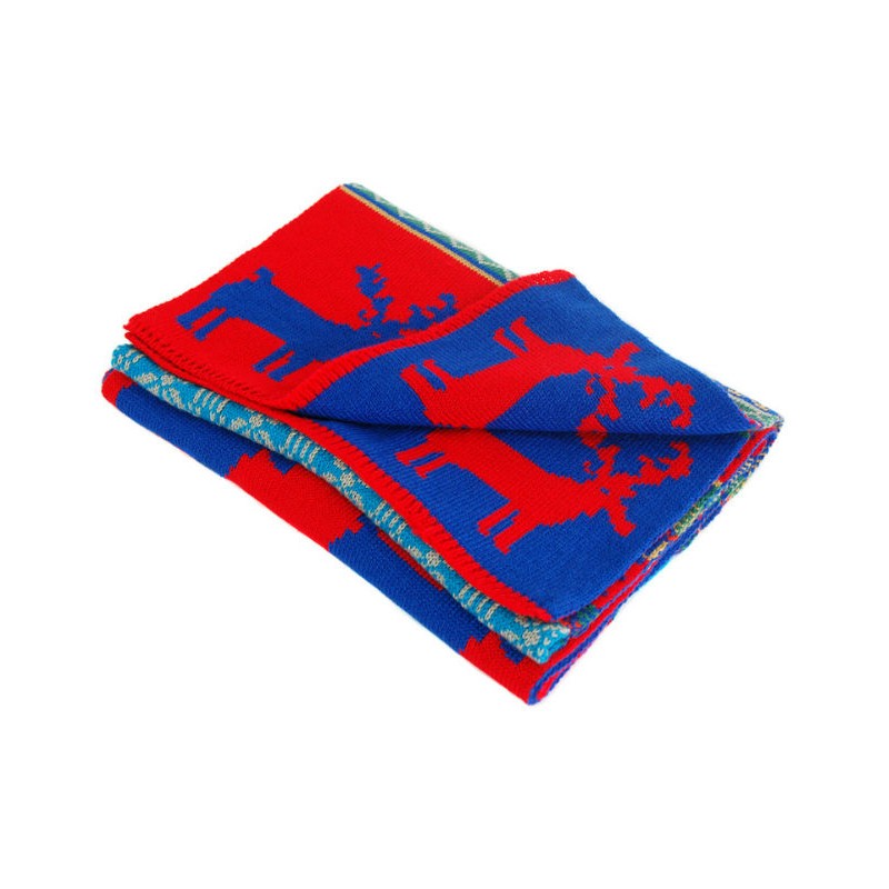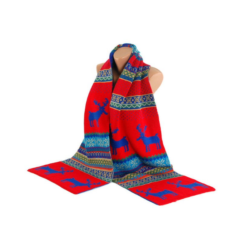 Шарф TRAUM 2483-22 красный с ярким зимним узором в синем цвете.