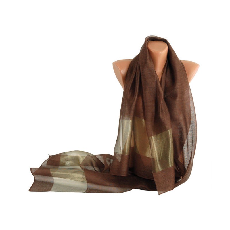 Шарф TRAUM 2495-64 коричневый с полупрозрачной золотой полосой.