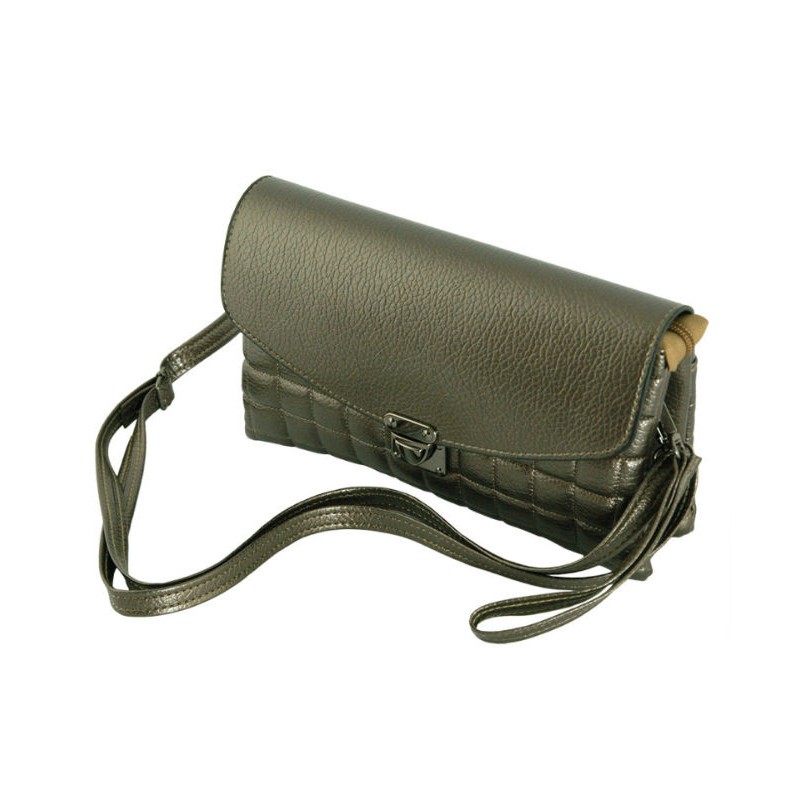- Сумка-клатч 7210-36 из PU кожи цвета темной бронзы, прошита квадратами.