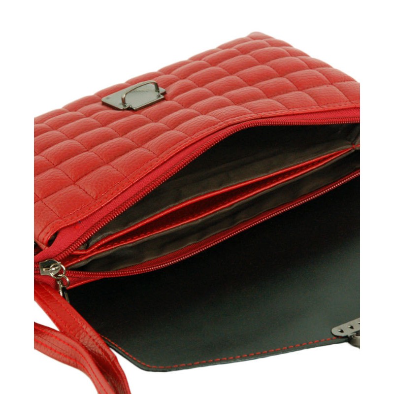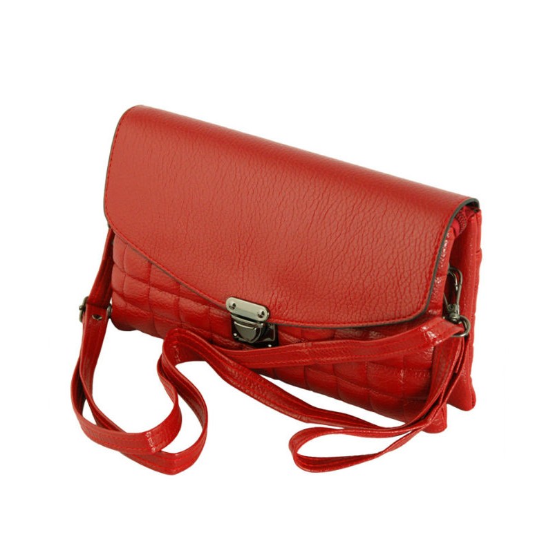 - Сумка-клатч 7210-38 из PU кожи красного цвета, прошита квадратами.