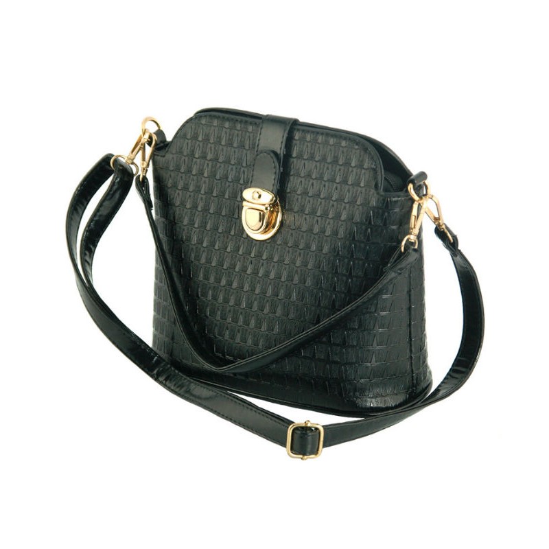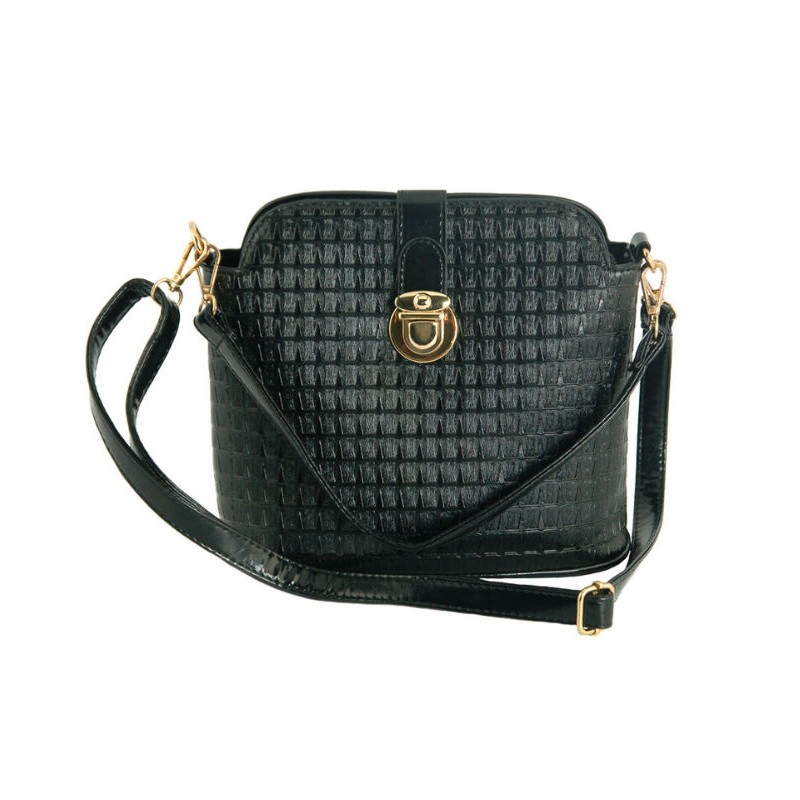 - Лакированная сумочка 7211-31 черного цвета, с тиснением, на длинном ремешке.