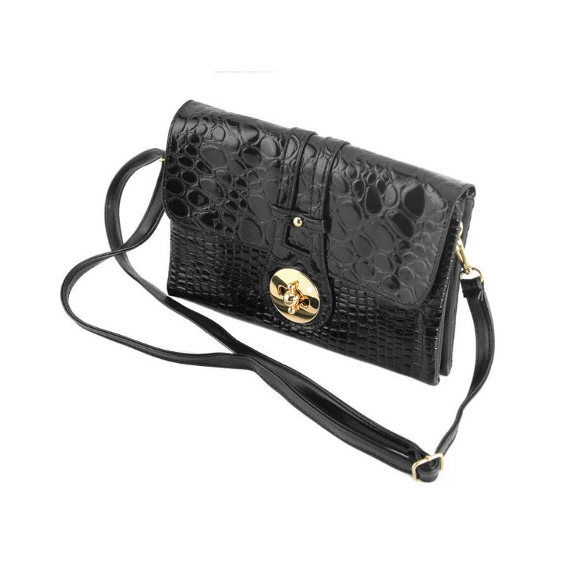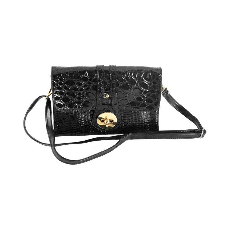 - Клатч 7212-43 женский лакированный с тиснением "камни", с клапаном, черного цвета.
