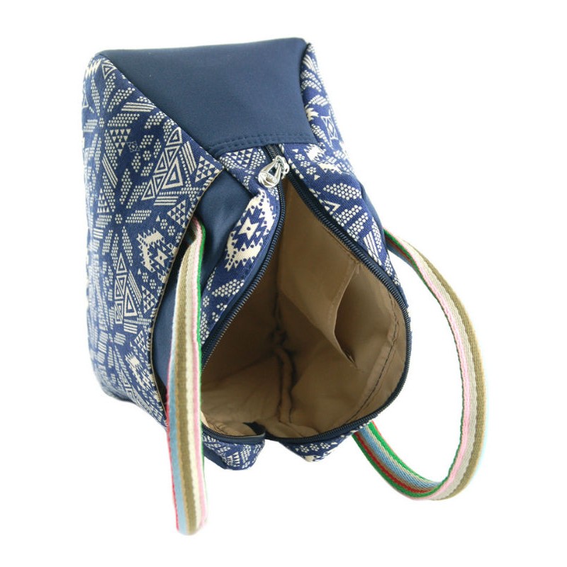 - Оригинальная текстильная сумка 7214-08 синя с ярким принтом-орнаментом.