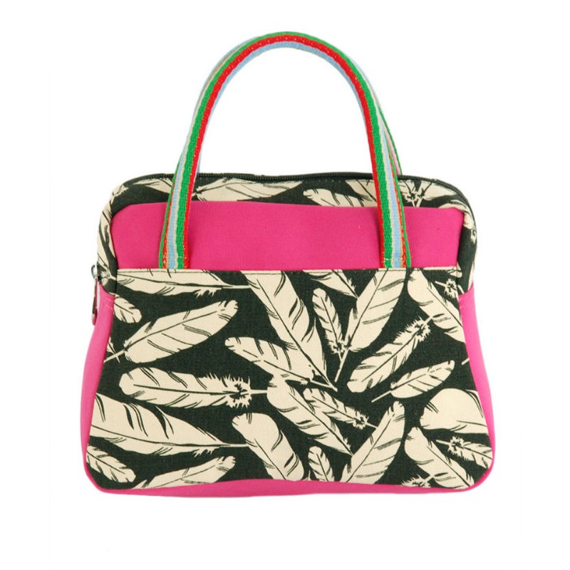 - Оригинальная текстильная сумка 7214-09 розового цвета с ярким принтом-орнаментом.