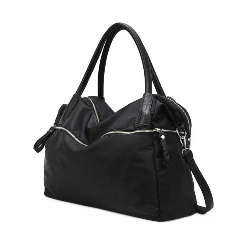 - Вместительная сумка 7214-10 из черного нейлона с кожаными ручками.