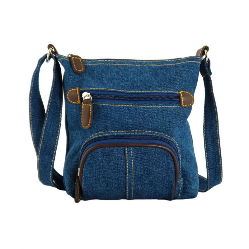 - Легкая джинсовая сумочка 7214-38 синяя на длинном регулируемом ремешке.