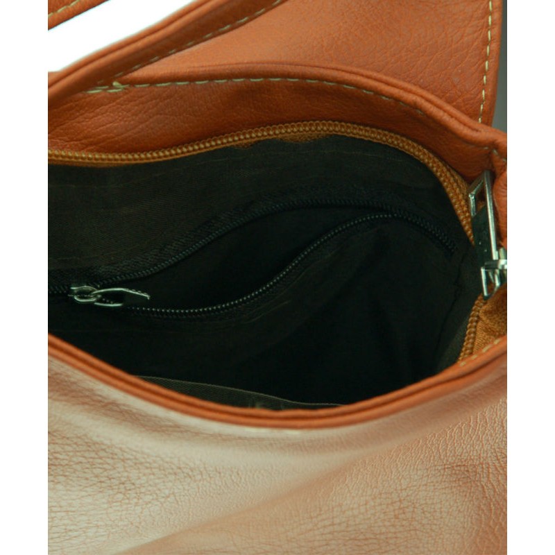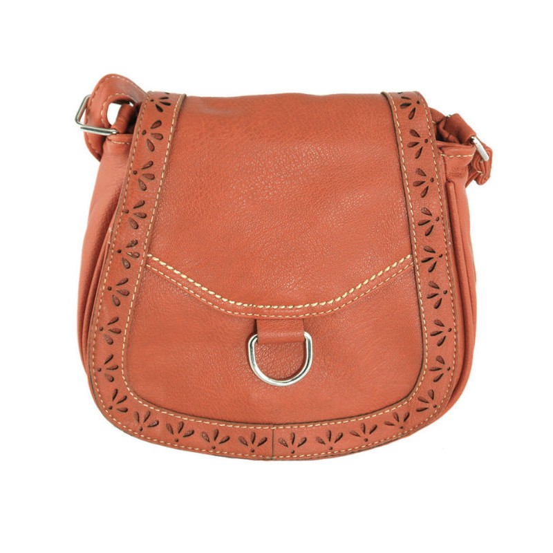 - Сумка-почтальонка 7215-44 кирпичного цвета украшена контрастной строчкой и перфорированным узором.