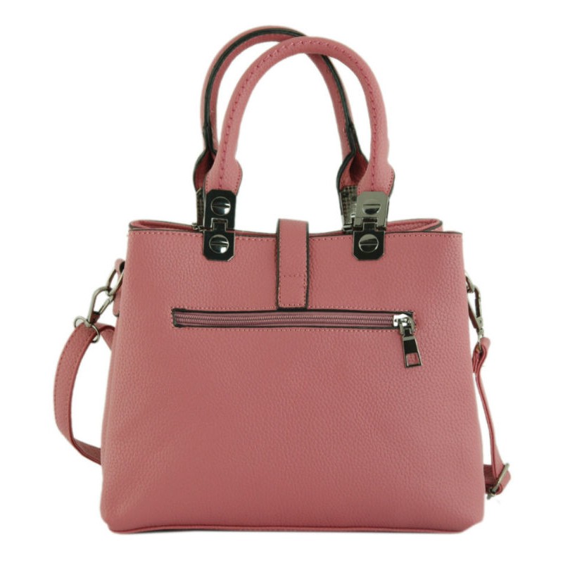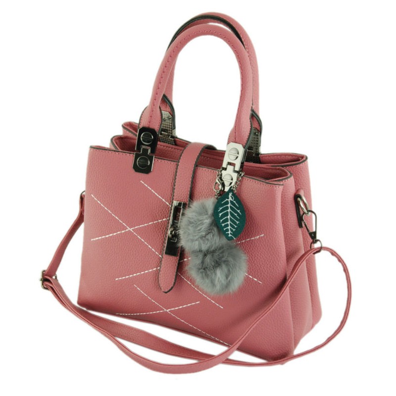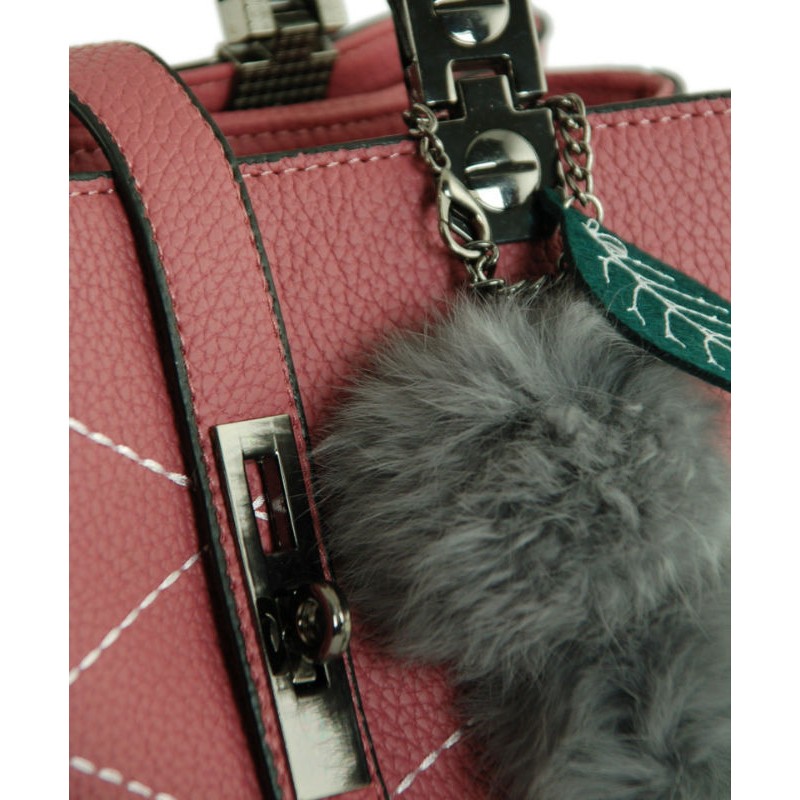 - Плотная сумка 7219-16 темно-розового цвета с навесным брелком из меха.