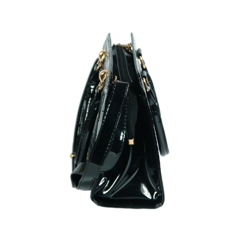- Лакированная жесткая сумка 7225-16 черная с тиснением.