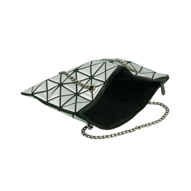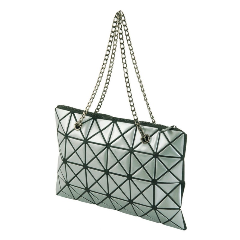 - Оригинальная сумка 7241-23 с серебристым геометрическим декором - имитацией пластиковых треугольников.