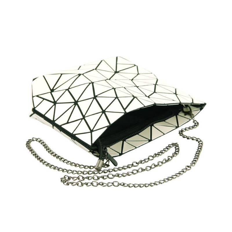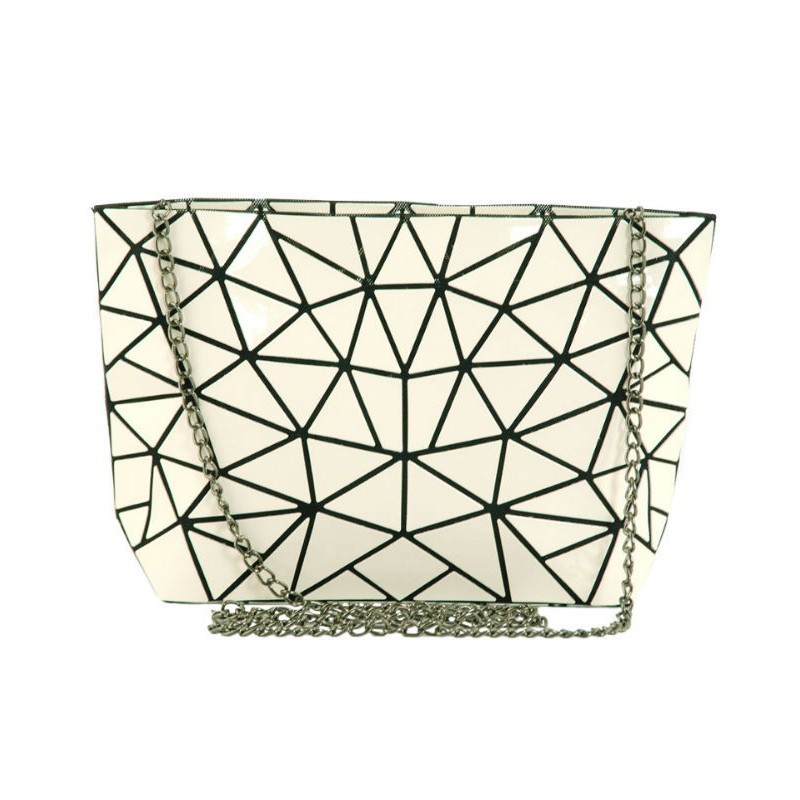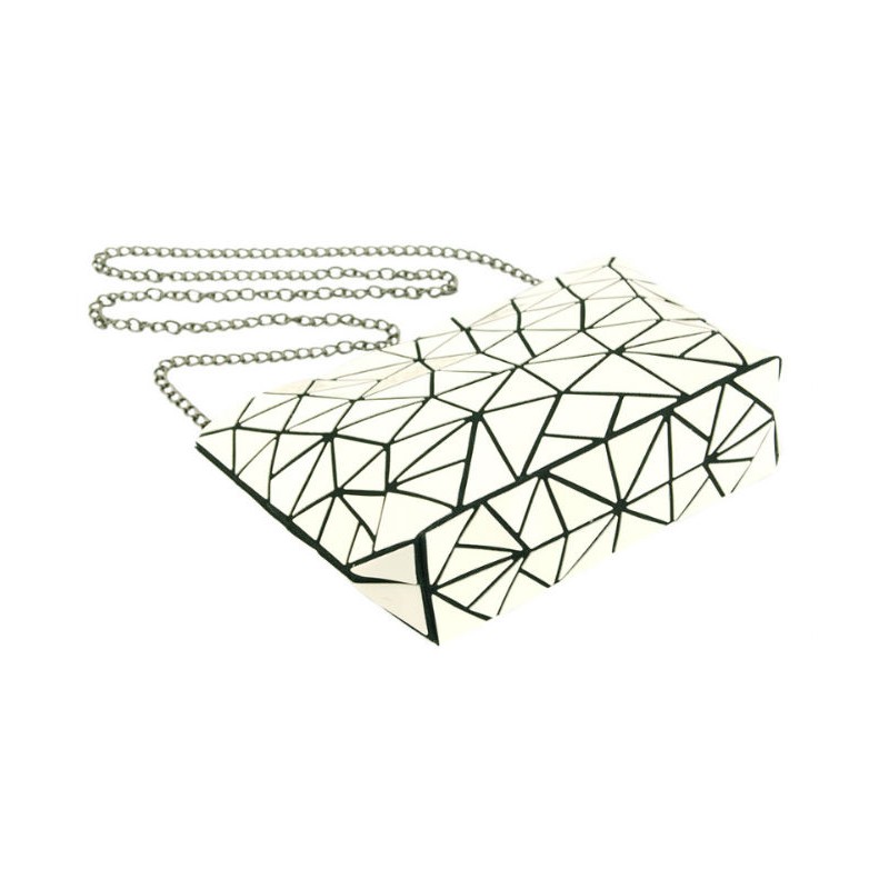 - Оригинальная сумка 7241-28 белая с геометрическим декором - имитацией пластиковых треугольников.
