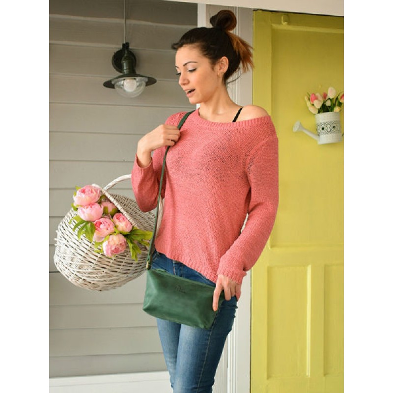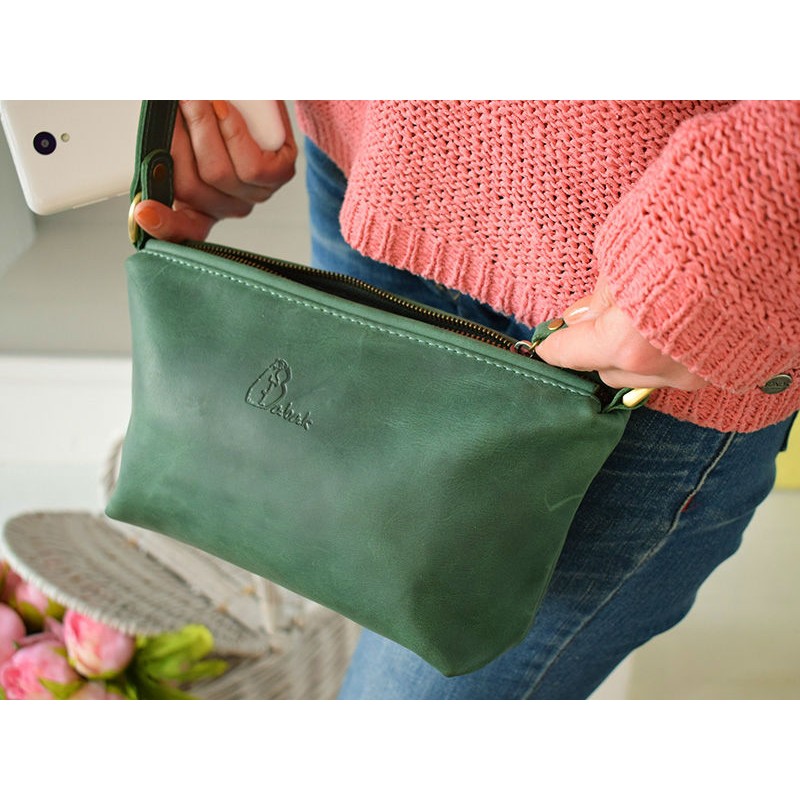 - Небольшая сумка Babak 898077 кожаная зелёная из натуральной кожи "crazy horse" с эффектом состаривания.
