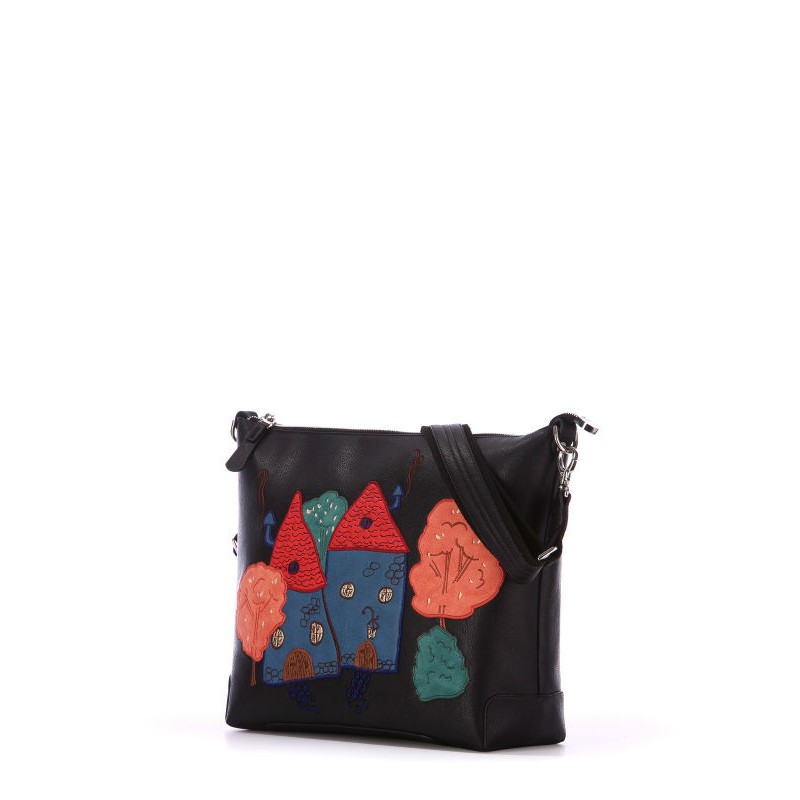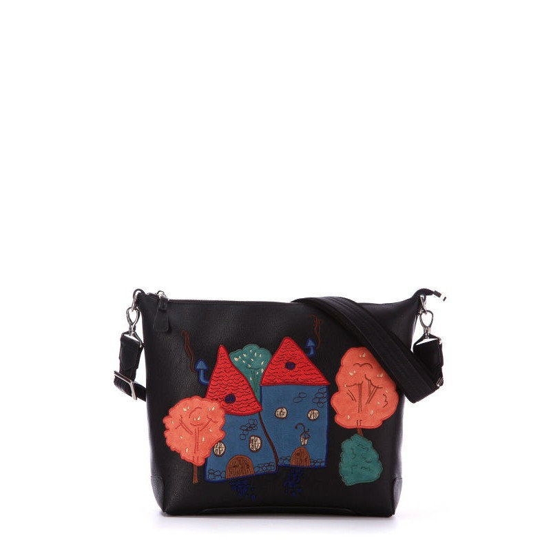 - Женская сумка через плечо Alba Soboni 172427 черная с красивой картинкой на передней стенке.