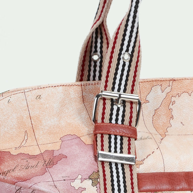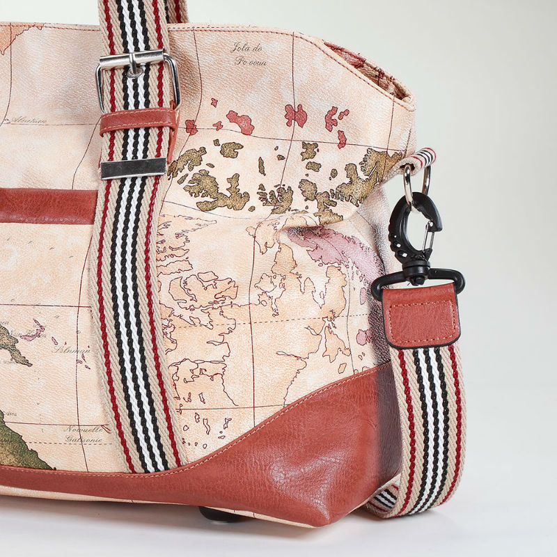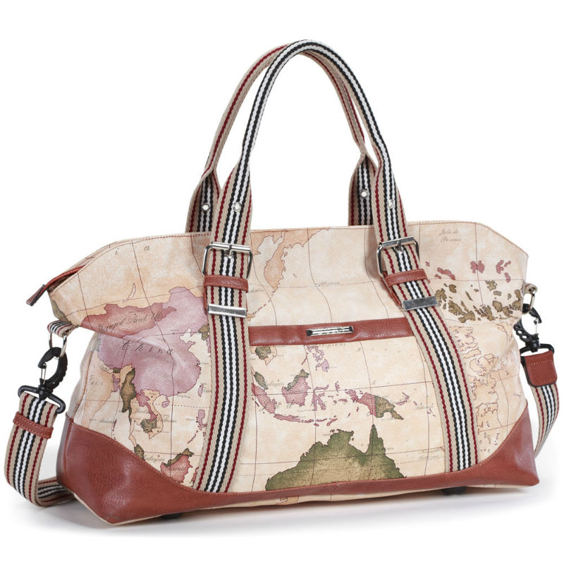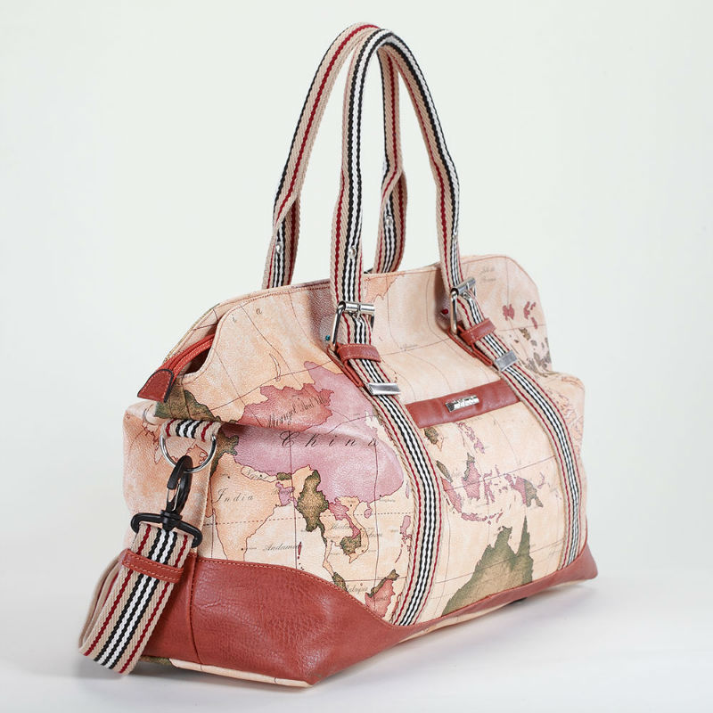 - Сумка дорожная 246 Dolly бежевая саквояж из кожи PU с принтом карты мира.