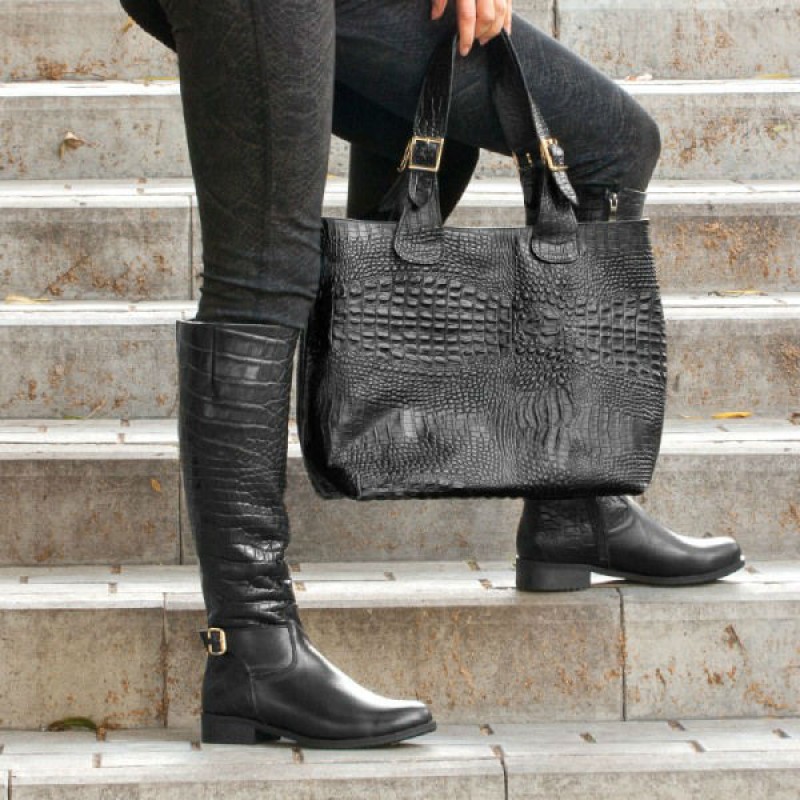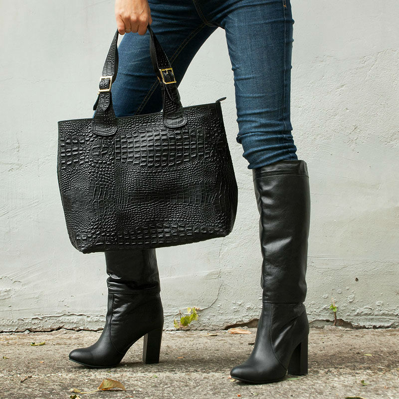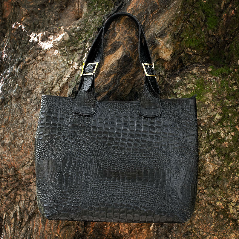 - Сумка женская кожаная 90008 черная выполнен из натуральной кожи под крокодила.