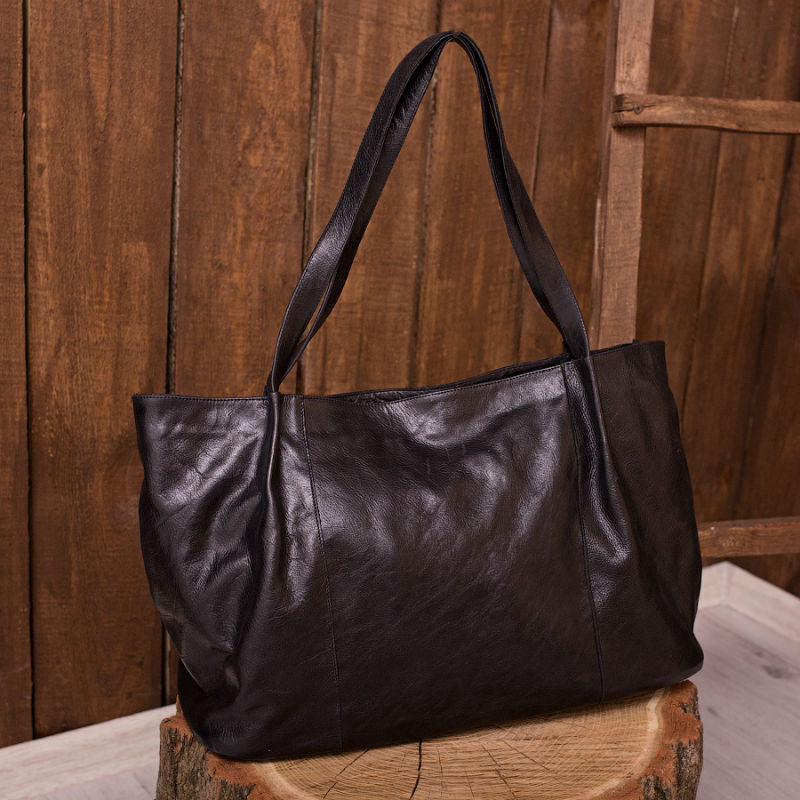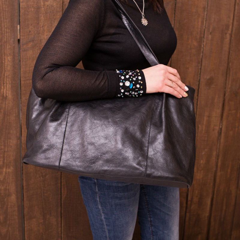 - Сумка женская кожаная 90196 черная из гладкой глянцевой кожи.