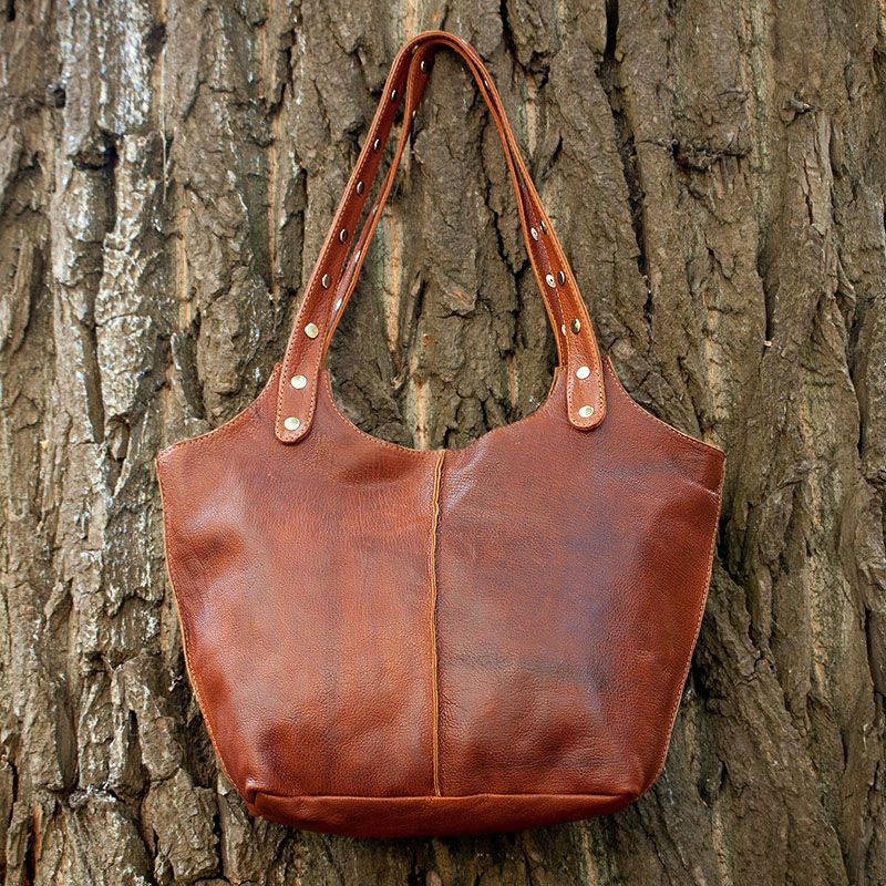 - Сумка женская кожаная 91019 рыжая из натуральной кожи с красивой зернистой текстурой декорирована заклепками на ручках.