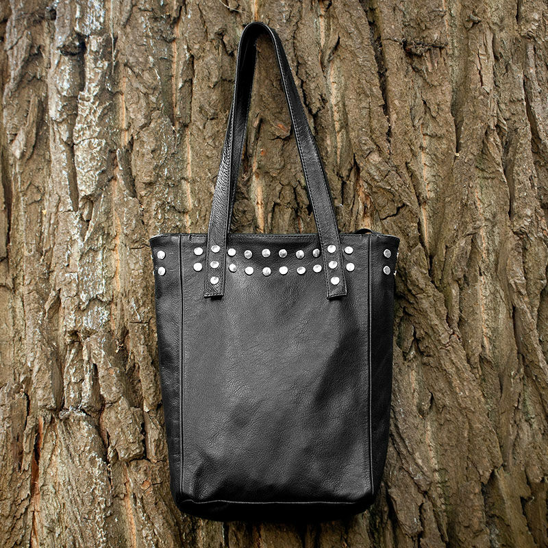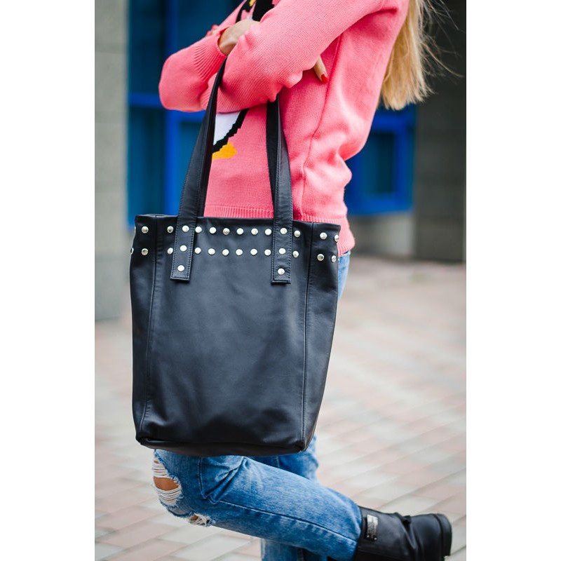 - Сумка женская кожаная 91027 черная декорирована кнопками.