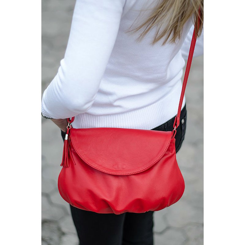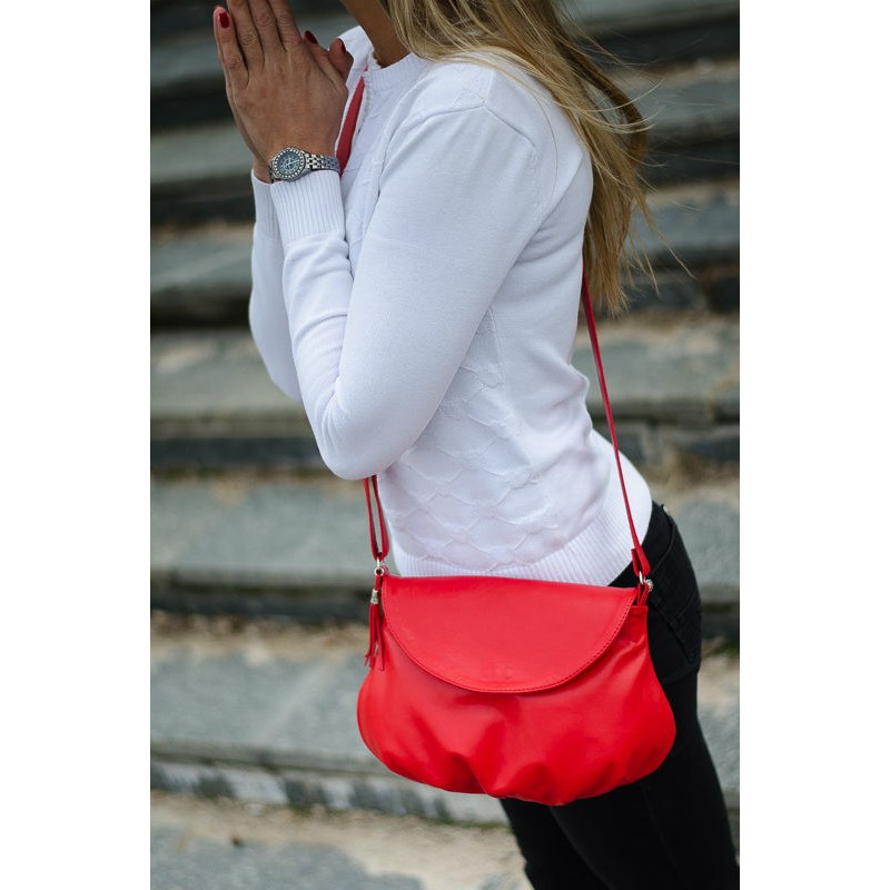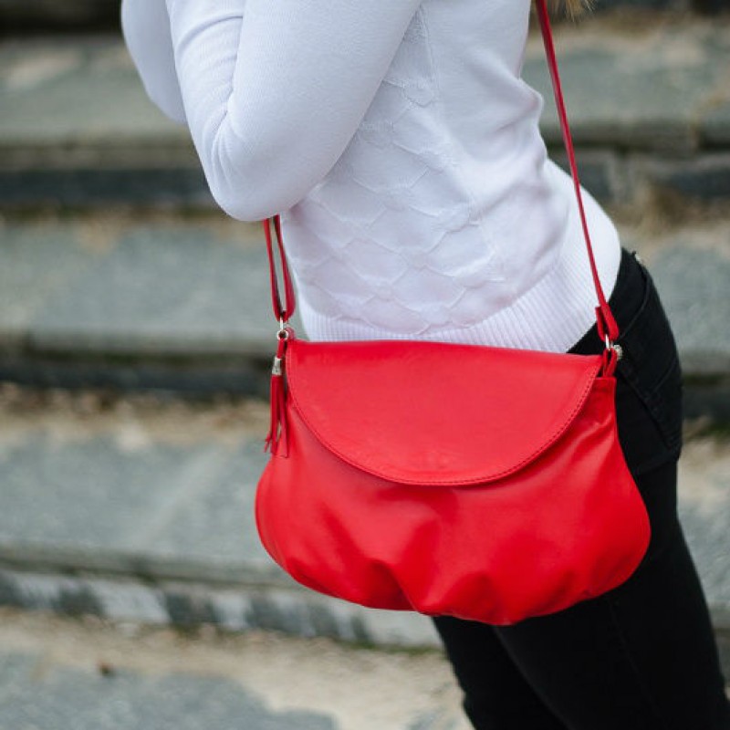 - Сумка женская кожаная 91064 красная через плечо.