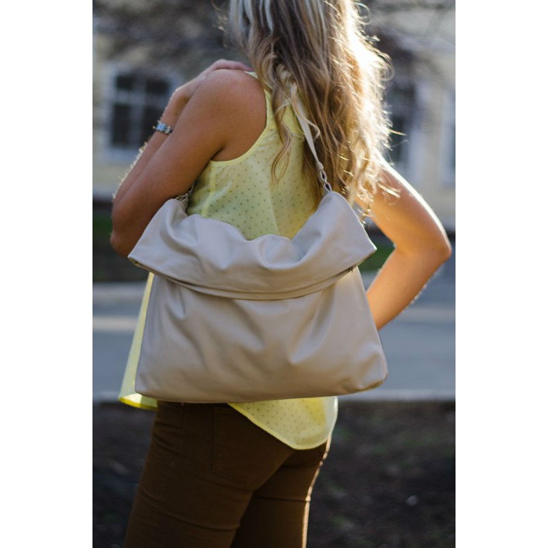 - Сумка женская кожаная 91116 бежевая с загибающимся верхом.