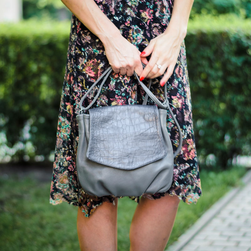 - Сумка женская кожаная 91260 серая с клапаном под крокодила.