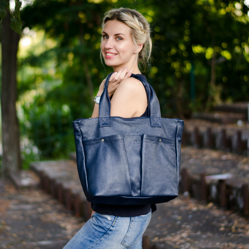 - Сумка женская кожаная 91262 синяя с карманами.