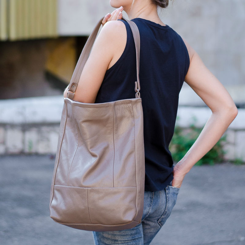 - Сумка женская кожаная 91266 бежевая на плечо.