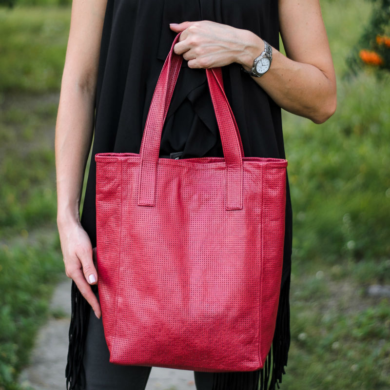 - Сумка женская кожаная 91268 бордовая из перфорированной кожи.
