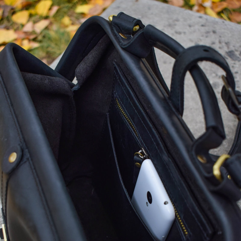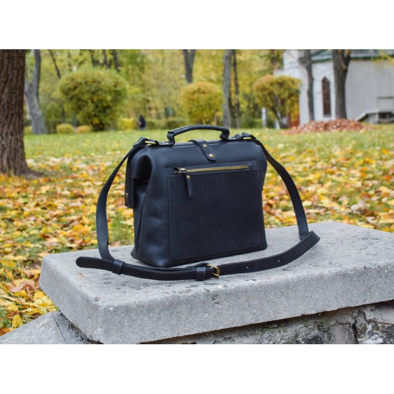 - Сумка кожаная BABAK Classic Black 906076 черная с металлической рамкой.