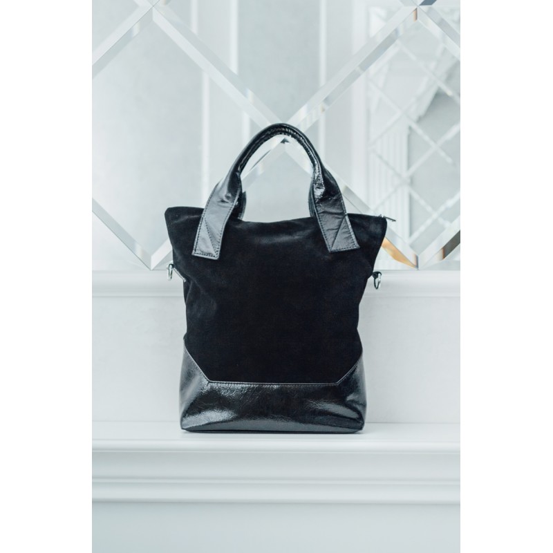 Сумка кожаная женская S400601-black черная замша/наплак с плечевым ремнем