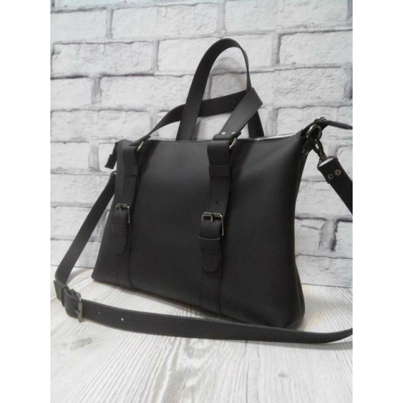 - Стильная мужская сумка Монако натуральная кожа черная суперматовая.