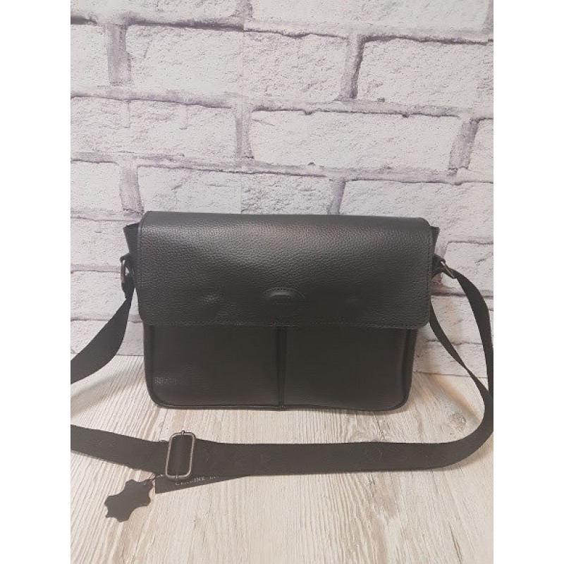- Вместительная мужская сумка ANKO "Бостон" натуральная кожа черная под флотар.